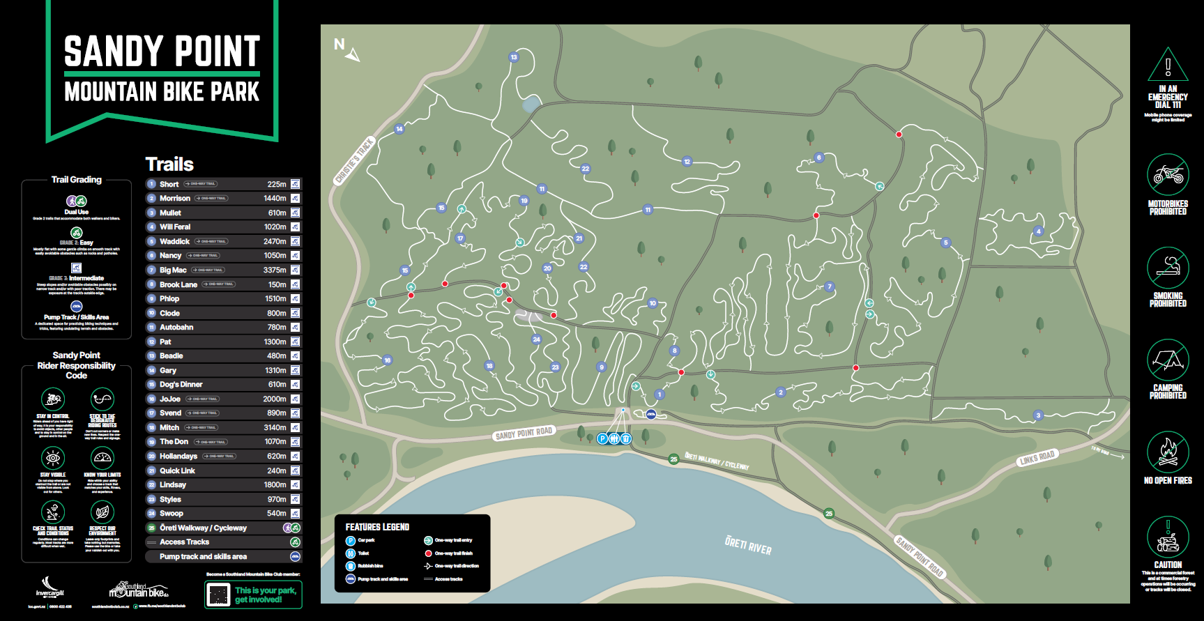 The Southalnd Mountain Bike Club's Sandy Point trail consists of over 20km of single and forestry road track. The trails are suitable for riding both winter and summer. Morrison and Big Mac are now one way trails. A big thank you to Vital signs for donating them.Its pretty simple, Trail Entry is where you go in Trail Exit is where you come out. Under no circumstance go in the Exit, there is a second sign in case you miss the first one. The rest of the trails are 2 way.